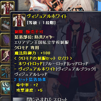 元々ホワイトロッドを持っていたので一緒に装備させていたら「思ったより結構似合う」といわれました。なんてこと。あれですね、赤黒白配色ですね。よくわかります(